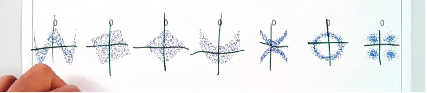 The last row of above is all 0 Correlation because data points are equally distributed in 4 different quadrants